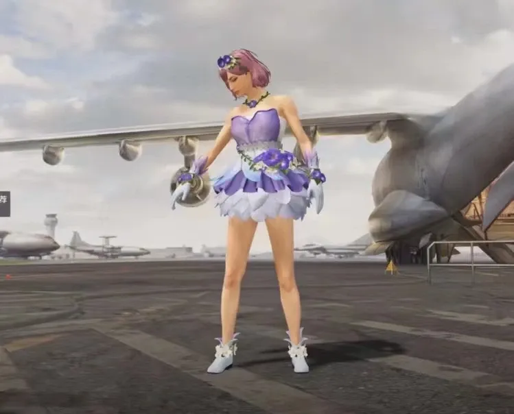 军需活动里的套装,掉率十分感人,价格也尚可。配色鲜艳设计简单,比起其他的大裙子,这套喇叭花套装没有任何视线遮挡,这也是很多玩家对这款服饰喜爱的原因之一。趴在地上很难被发现,这也是一种方便打伏击的隐藏加成。