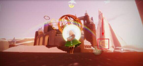 4.任务四:前往霞谷的滑冰场,然后达到霞光城,在霞光城入口的右侧可以看到彩虹,蜡烛就在彩虹的下方,位置如下图所示。