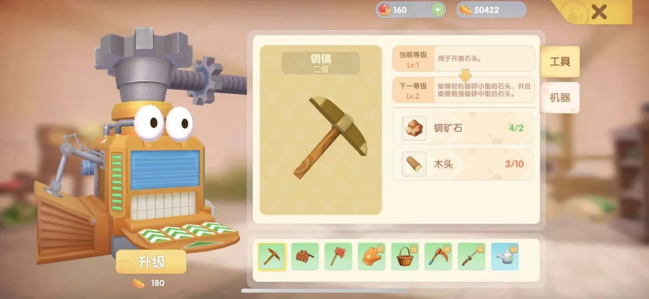 想要获得矿石就要去不同的区域进行开采,首先在家园内有小块石头,前期先用一级铁锹进行开采,等有了一定的资源升级铁锹我们就可以再家园内开采比较大的岩石了,等到有资源升级三级铁锹之后我们就可以到大地图去转一转,一般可以去肥肥工厂进行开采,进入后点击右下角的探矿就有一定几率获取矿石。