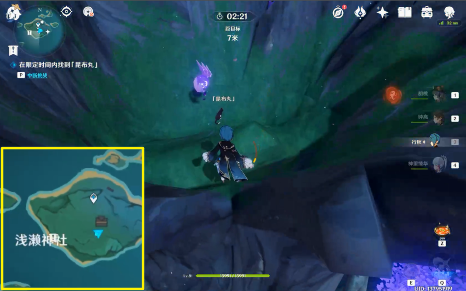 *昆布丸在神社后面的树干顶部(神瞳的位置)。