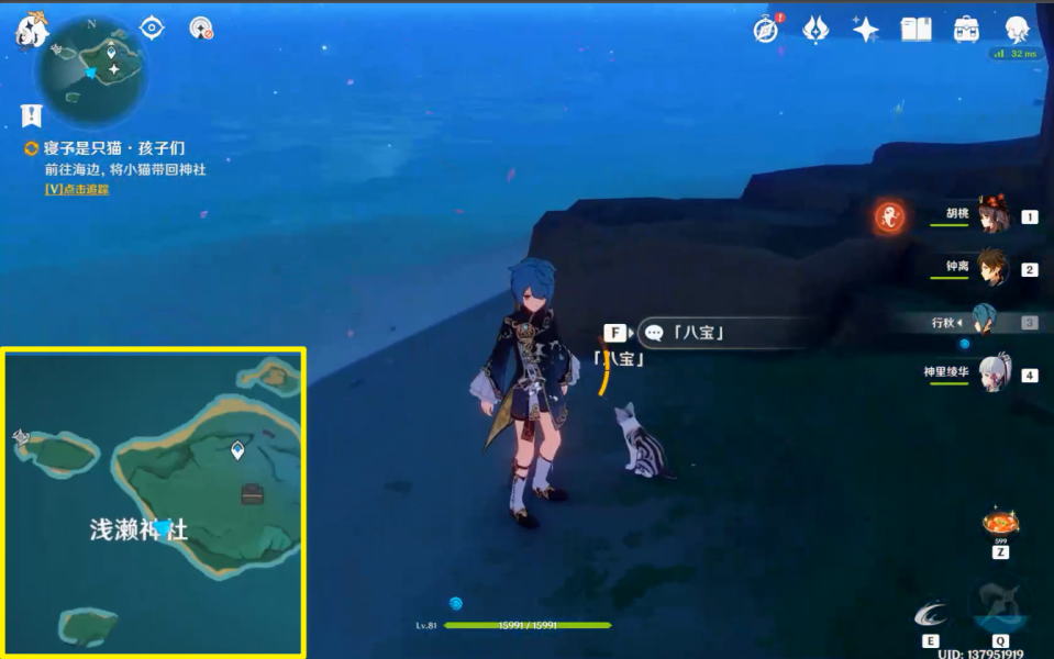 (1)前往海边,将小猫带回神社。(在限定时间内找到「八宝」。)