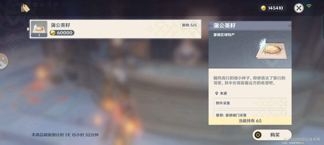 璃岛远航之风店主卡琵莉亚,可购买角色升级材料:蒲公英籽(琴团长,优菈等人可使用)