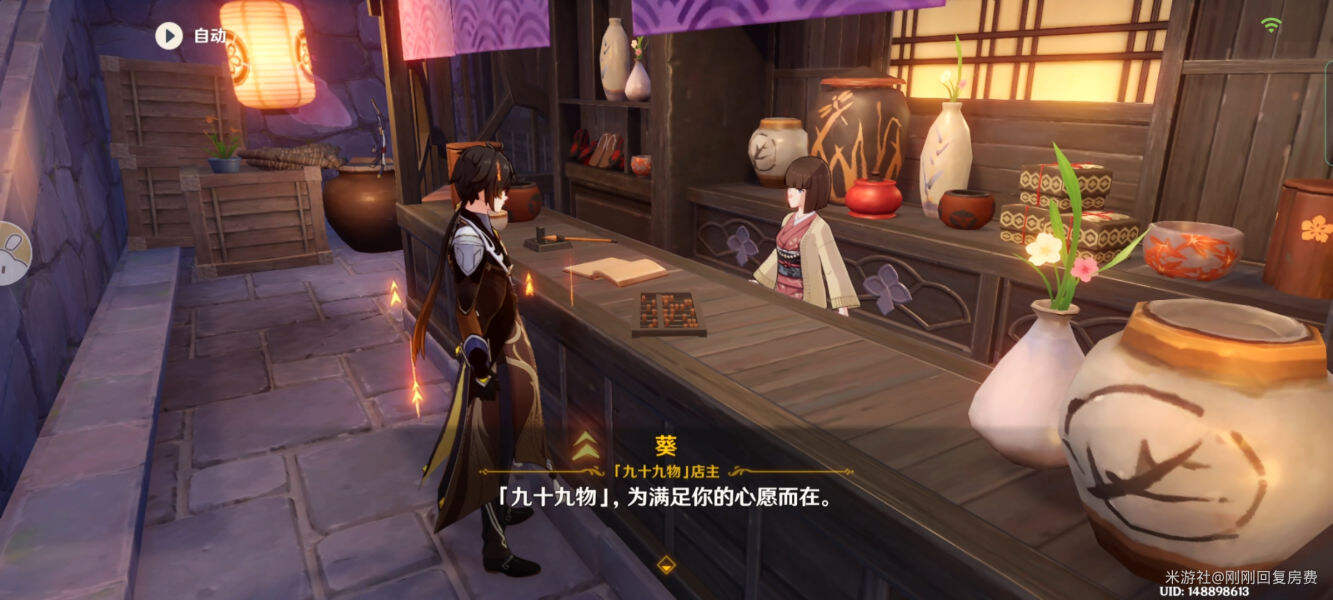 稻妻城九十九物店主葵,可购买角色升级材料 :鸣草(宵宫可使用)