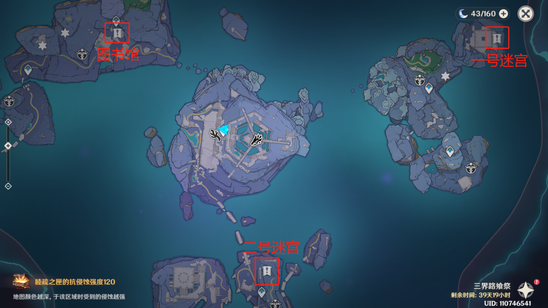如上图天舞标示的任务图标所示,分别在图书馆、一号迷宫和二号迷宫处。(以下的展示顺序为此顺序)