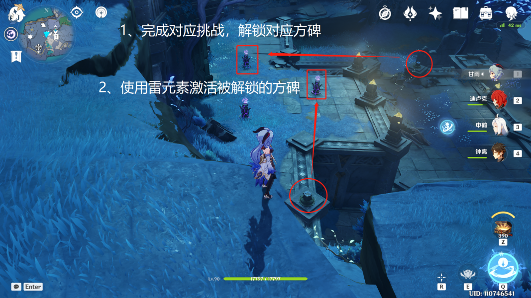 如上图所示,完成边边对应的挑战,即可解锁雷元素方碑上的封印,再使用雷元素激活,即可打开图书馆的大门,并且获得一个精致的宝箱。(因为前三块石板视频录制时,发生了故障,所以天舞只能给大家展示事后的图片,不过问题影响不大,小伙伴们就将就一下吧!谢谢!)