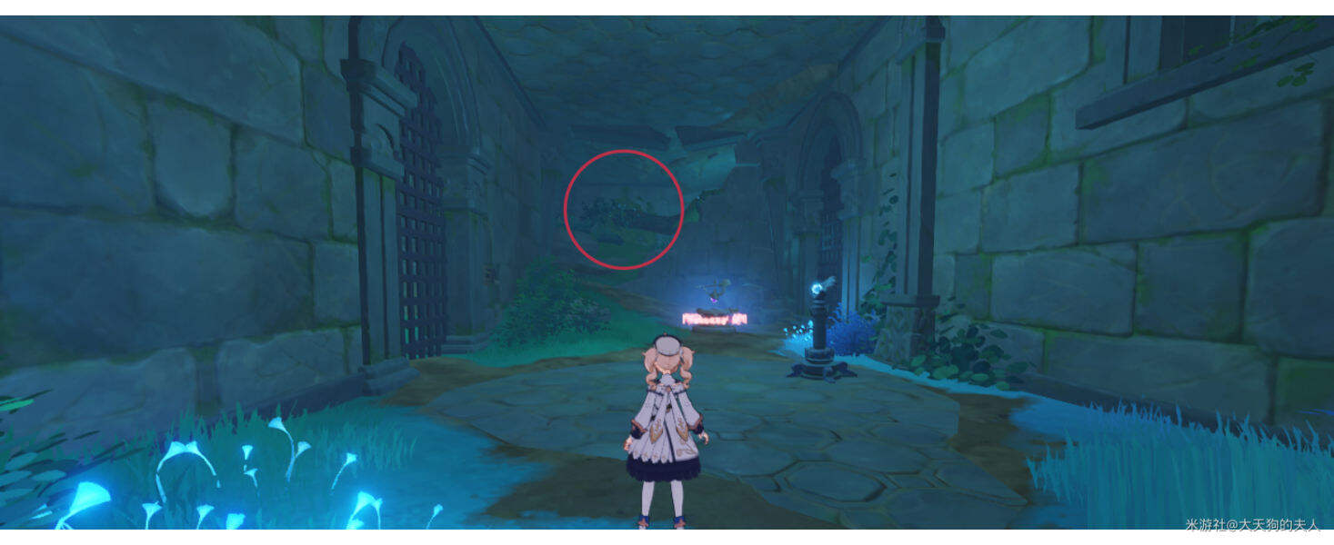 走进图示红圈处的缺口 ↑ ↑ ↑ 会看见里面也有两个「雷柱子」。