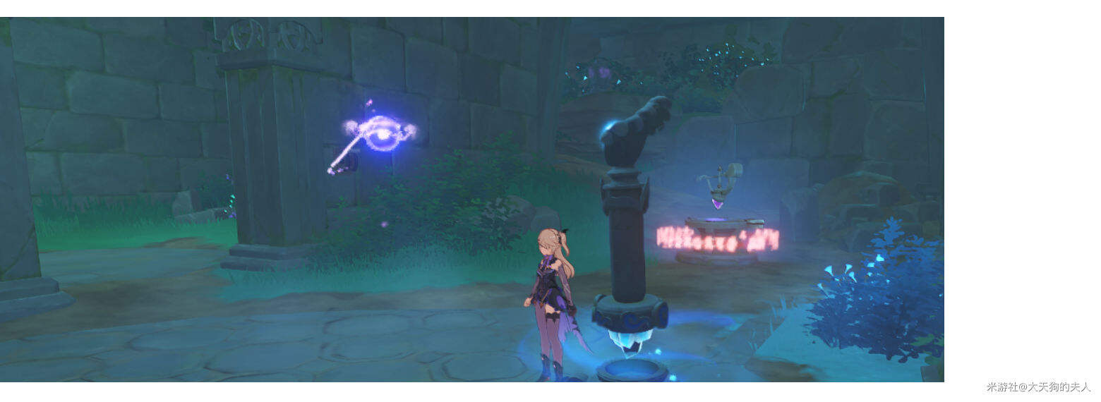 启动房间里的尊像,出现一只雷灵,追逐雷灵,根据雷灵的提示按照顺序激活「雷柱」。