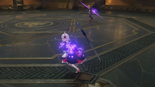 2.雷刃攻击:有三种:(1)挥舞长枪对玩家进行攻击,第三段为落雷攻击,攻击高,只要被击中就会被上雷标记(攻击4次)