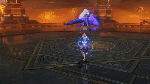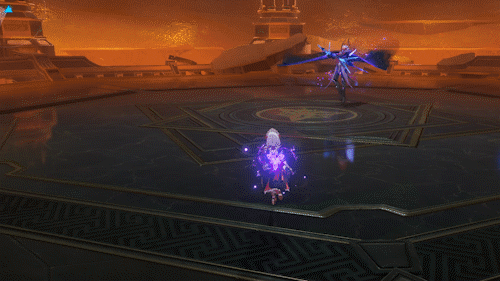 4.四方雨箭:忽然地上出现四个提示范围,过几秒后范围内迅速降下雨帘对玩家造成范围伤害,基本覆盖全场,伤害极高!