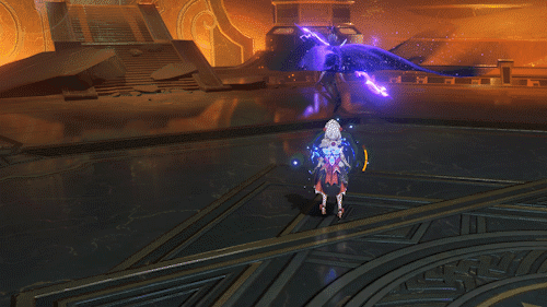 5.三段雷舞:挥舞长枪对玩家进行攻击,第三段为长枪滚动攻击,范围较大,攻击高,只要被击中就会被上雷标记,范围比一阶段大两倍左右,较为难躲(当然也有只挥两次的情况)