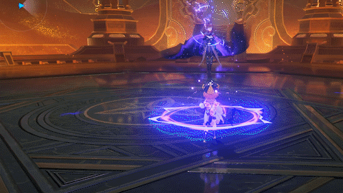 10.雷轮重击:公子自己召唤附着雷元素的长枪,随意在场地进行滚动攻击