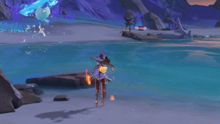 技能介绍:水飘浮灵微笑着蓄力一段时间,地面形成一个蓝光圈,过一段时间后光圈处形成水花,对旅行者造成伤害,同时若魔物处于光圈内,则会恢复血量
