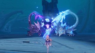 技能描述:深海龙蜥蓄力一小段时间,朝着旅行者吐出一颗冰球/雷球