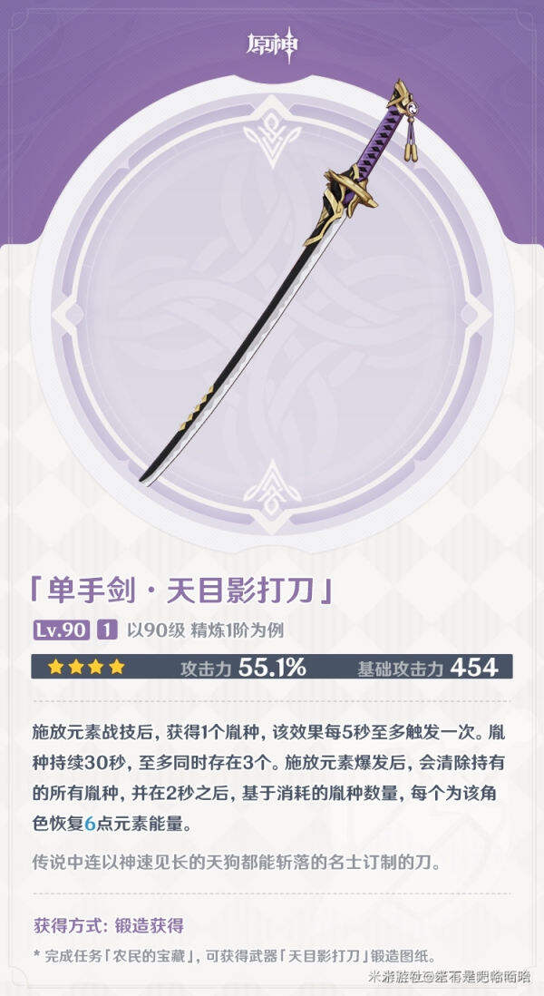 )带天目影打刀的神里不需要充能效率,让你圣遗物有更多的选择(低精炼可以稍微带点)所以神里带天目影打刀不输任何四星武器