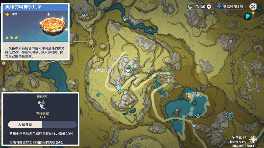 来到庆云顶传送点,使用体力药和安柏,一路向东飞行,直到跳成就即可