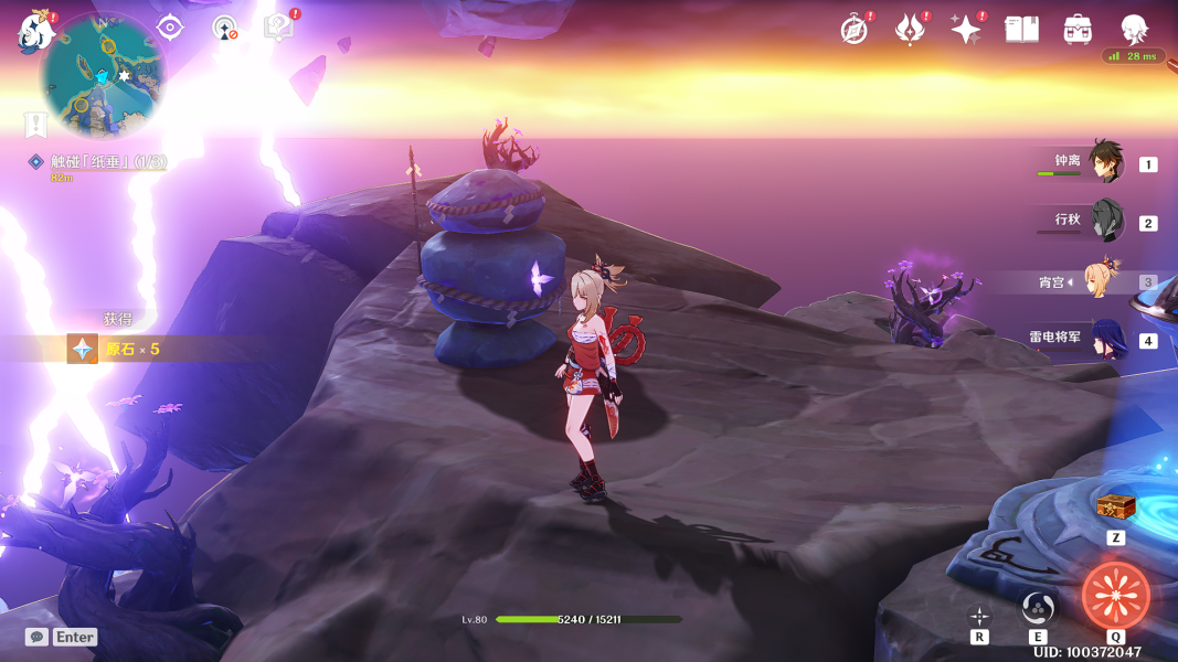 任务奖励,完成此任务后,雷暴天气会停止,也可以打雷灵给雷神刷材料了,还有就是总记获得150原石,成就《清籁逐雷记》
