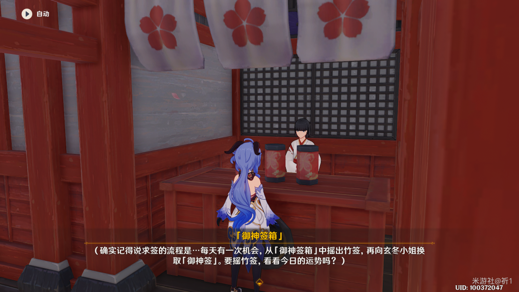 在神社右手边,找到这个小姐姐,找她抽签,解签,每天只能抽一次哟