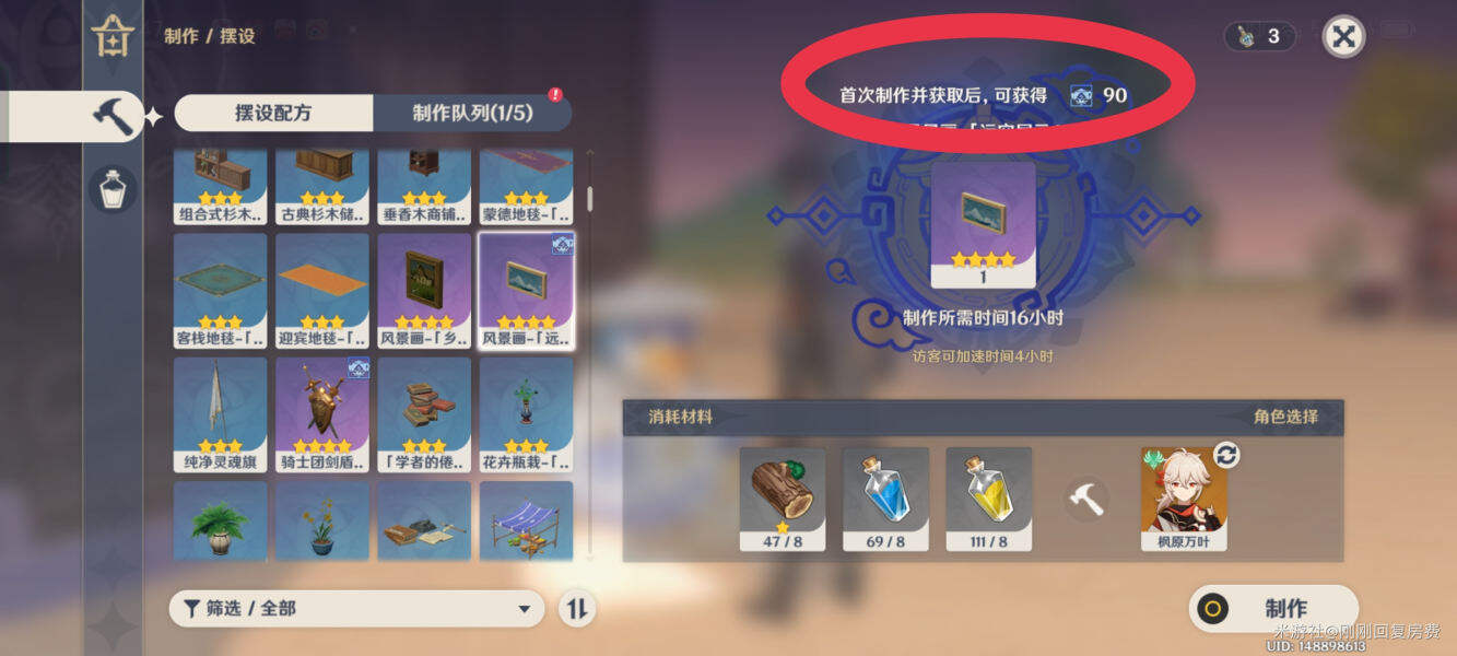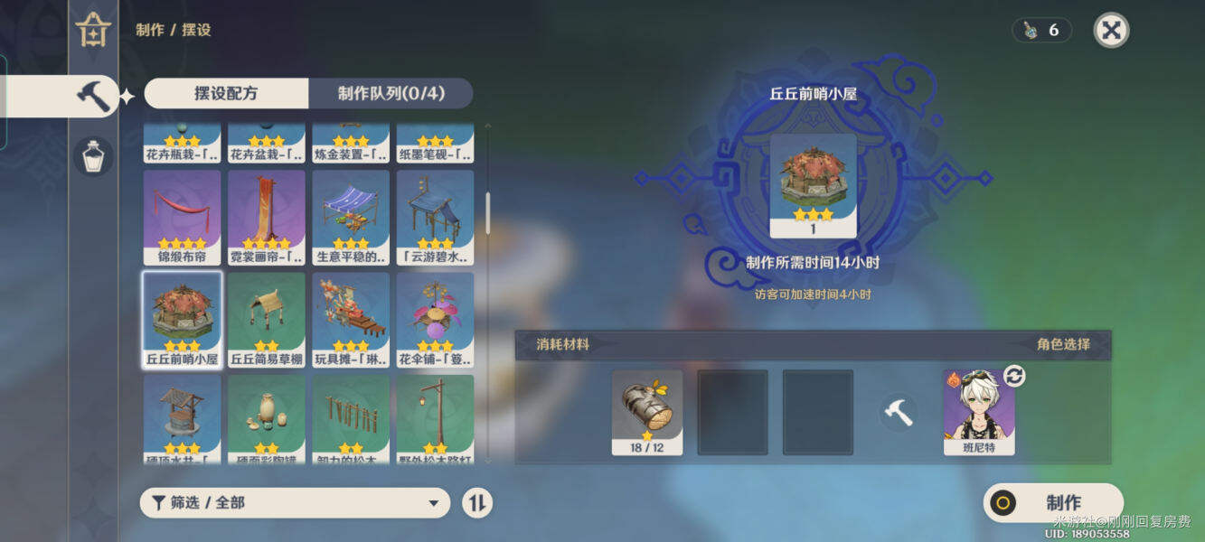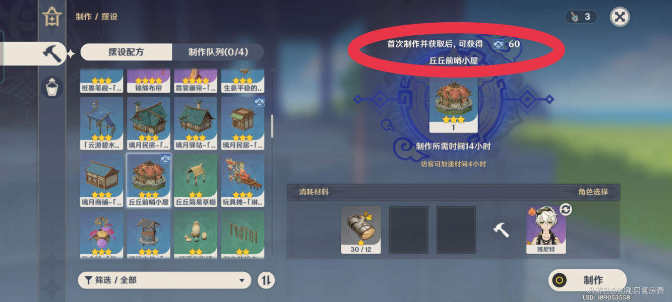 摆设只有首次制作才能获得尘歌壶经验,也就是说制作好家具/建筑获得一次尘歌壶经验后,再制作是没有尘歌壶经验的,丘丘前哨小屋已拿过一次经验,下一次制造已经没有了经验。