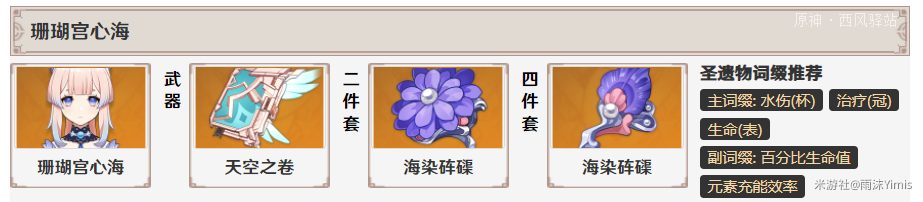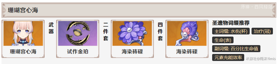 无论如何首先推荐选用不灭月华,适合于心海的武器技能机制可以打出更高的伤害。海染4能够进一步提高输出,缓解部分对群压力。