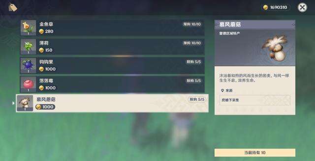 蒙德植物学家克罗丽丝处:(由于该NPC会随意走动所以地点不定,但大致位置位于下图中画圈部分的道路附近):钩钩果、落落梅、慕风蘑菇(雷泽、女仆、芭芭拉突破材料)