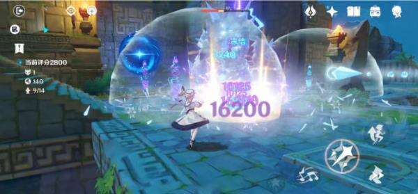 冰丘丘王的冰属性加上芭芭拉的水元素产生的冻结反应会让其不能前行,承受更多的伤害。这样我们可以轻松拿下3000分了。