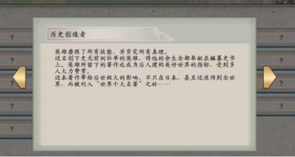 写了几卷的这个进度大概是无法查看的,还有,不进结局的话,老人会表示遗憾,然后你什么都得不到,并不会多一个全属性+20的贵重品,不过总的来说,用秀吉完成《秀吉立志传》,这波真的情怀拉满。