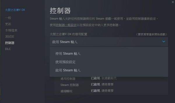 《太阁立志传Ⅴ DX》中玩家在Steam版中可以使用手柄进行游玩,而在使用手柄之前需要将steam收藏库中,控制器从使用预设设定改为启用Steam输入,然后进入游戏即可,比较简单。
