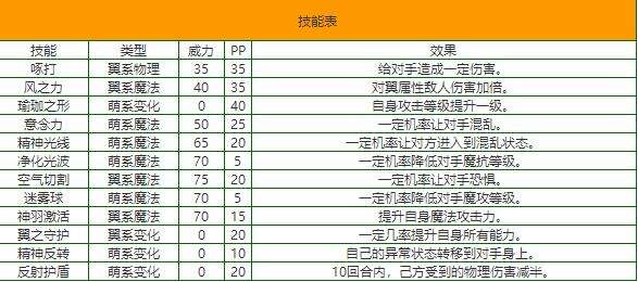 《洛克王国》开屏雀技能表图鉴