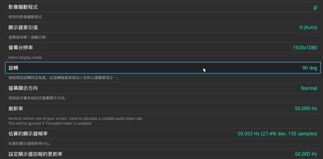 通常是调为 90 deg 变成垂直画面,玩家可以视乎情况调整。(不要选错下面的 “屏幕显示方向”,它会把你整个电脑屏幕旋转。)