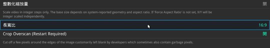 4. 变更画面长宽比以符合旋转后的屏幕比例,设定 > 影像 > 缩放 > 长宽比,如果你的电脑屏幕是 16:9 就改为 16:9。