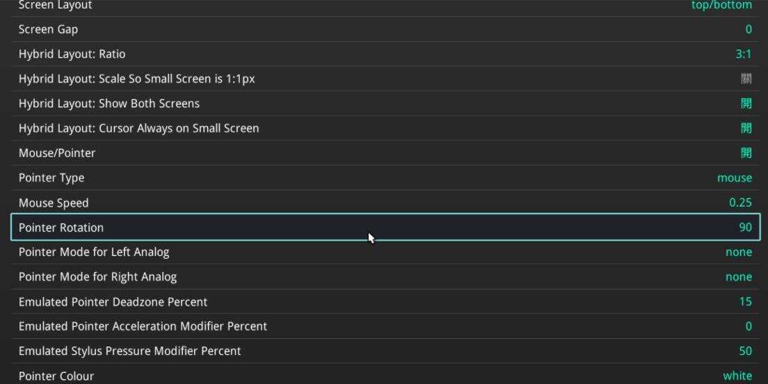 开启游戏后按 F1 进入快捷选单 > 选项 > Pointer Rotation,根据你刚才旋转屏幕的角度来设定,如果是 90 deg 就选 90。