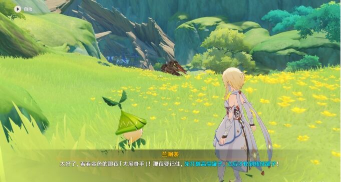 未开传送点的,开完传送点回头(开了传送点的传送出来正对的方向就是草元素方碑)来到草元素方碑处,进入下图四红色箭头所指洞口,一直朝里走即可看到一个兰那罗的石头小屋,进入小屋使用草元素唤醒兰纳罗