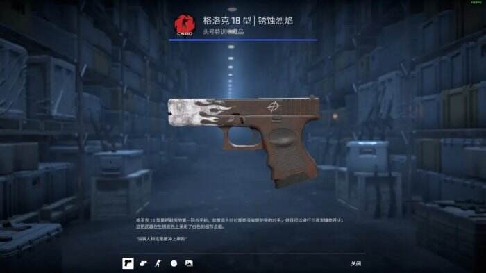 格洛克18型:本生灯、远光灯、冬季战术、锈蚀烈焰、烈焰天使、城里的月光、铁之作、圆影玉兔、一目了然、星形世界、红苹果、皇家军团;USP消音版:力矩、次时代、地狱门票、铅管、闪回、黑莲花、引擎故障灯;P2000:手炮、至高皇帝、酸蚀、草皮、都市危机、盘根错节、黑曜石;250:富兰克林、赛博先锋、X射线、影魔、翼击、卡带、超新星、元素轮廓、葡萄酒、变革;沙漠之鹰:锈蚀烈焰、后发制人、轻轨、柯林斯遗产、蓝色层压板、青铜装饰、人造卫星、指挥、娜迦蛇神、陨星。