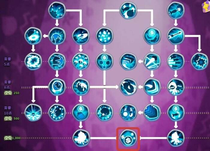 部分知识需要在该组知识中投入足够的知识点才能解锁,带有箭头指向的知识需要将其指向来源解锁后才能够解锁
