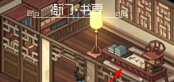 在衙门书房书桌上,找到如图所示的字画即可。