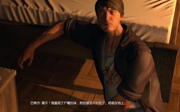 2、我们使用开锁工具进门,发现巴希尔痛苦地倒在地上,原因是吃了尸毒抗体。