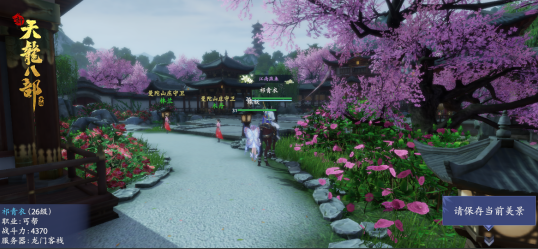 《新天龙八部》的画面并没有想象中的那么宏伟,反而更加优雅安静。很多场景都是用了太多的功夫创造出来的,渲染的恰到好处。如下图桃园,桃花遍布山庄,视觉体验相对较好。