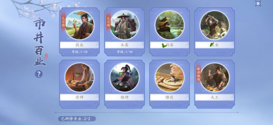 除了小游戏之外,“市场各行各业”下的修炼内容也为玩家打造了一个栩栩如生的武侠江湖,玩家可以学习各种专业,比如药农、木匠、渔民等等。除了游戏刷书,各种专业选择给人沉浸的体验。毕竟江湖从来都不止打架杀人,不是吗?