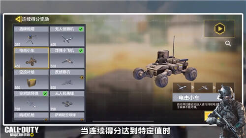 (《使命召唤手游》连续得分奖励展示)