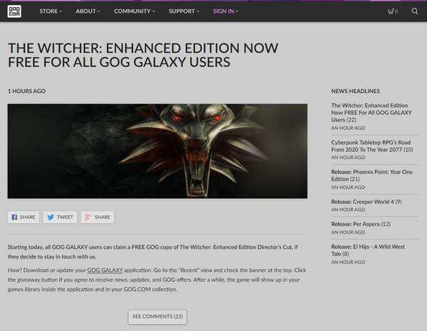 又到了各位玩家最喜闻乐见的白嫖时间了!开发商CDPR宣布GOG Galaxy平台免费赠送《巫师 加强版》。注册用户需先下载最新的GOG Galaxy 2.0客户端,然后点击“最近”,再点击上方条幅的“领取”即可将本作加入游戏库。对这款经典游戏感兴趣的玩家赶紧点击下方链接吧。