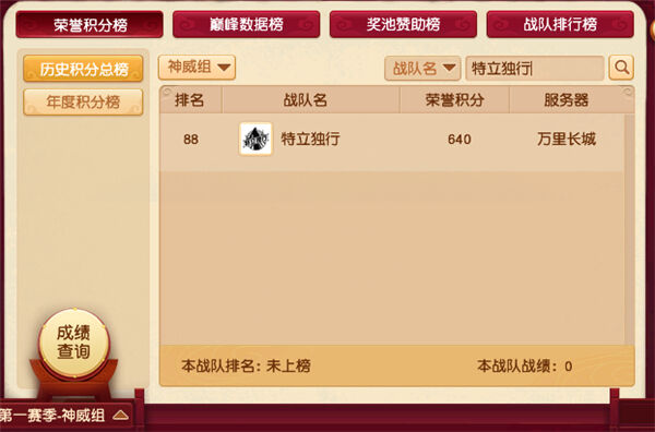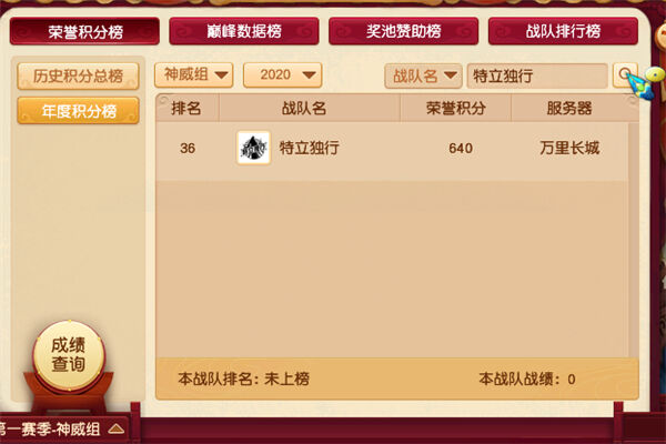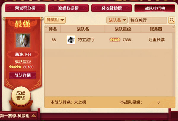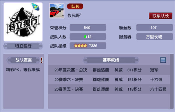 特立独行是万里长城今年年中重新组建的战队,目前战队只有四星,战队排行榜屈居第68位,2020年度积分榜排在第36位,历史积分榜排在第88位。