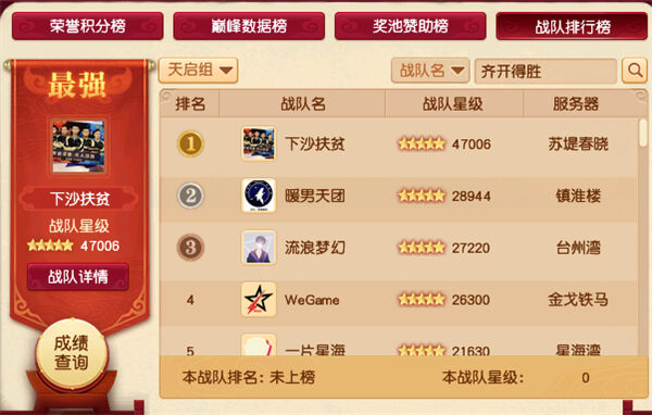 下沙扶贫是天启组当之无愧的霸主,绝对的王者战队。五星战队,战队排行榜、2020年度积分榜、历史积分榜三榜第一。