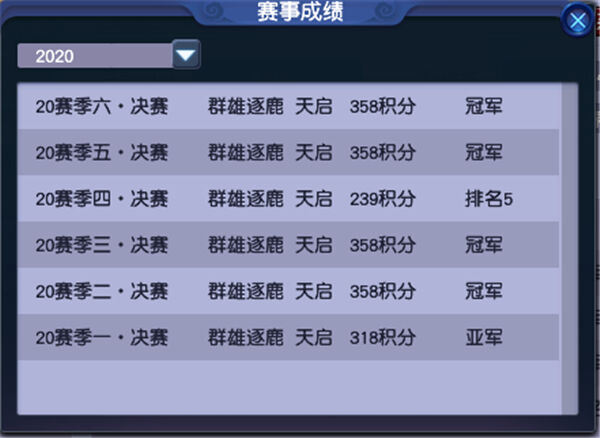 风云骤起,群雄逐鹿,2020年群雄逐鹿系列赛经过迭代改版之后,大量全新战队涌入群雄逐鹿,让群雄逐鹿系列赛在今年得到了跨越式发展,新王登基,旧王强势,新老参半的格局让来年群雄逐鹿系列赛更加让人期待。