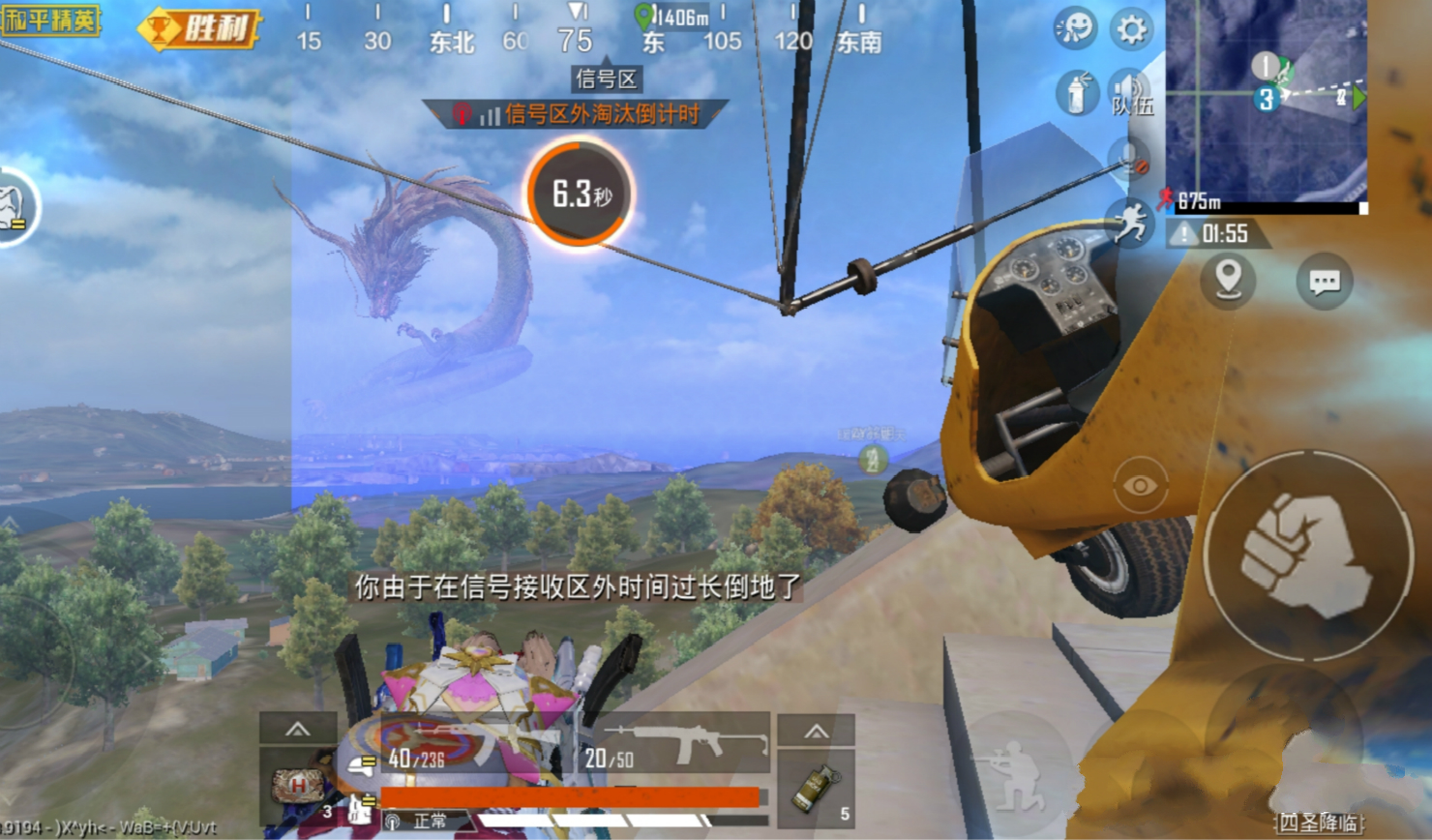 如图,当玩家乘坐滑翔机来到祭坛时,出现了“高空危险,不要离开车辆”的提示,玩家别无选择,只能原地等待信号圈的消除,最终因为信号圈而被消除。