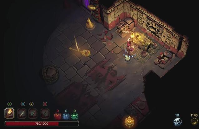 游戏还有个特殊机制能影响战斗体验,那便是光明和黑暗的环境会对角色产生影响。当在一个完全密闭黑暗的神殿中,玩家可以借助火把、火盆一些火光来获取光亮。但事实上并不会一直有光亮在周围,主角在黑暗的神殿中所遭受的伤害也会翻倍。