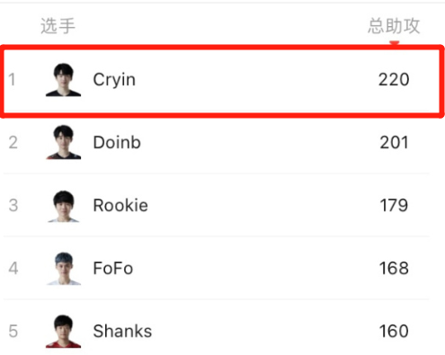 这样的“猥琐”玩家真的很强吗?事实上,郭戈的数据相当不错。在KDA,郭戈位居第二,仅次于骑士。郭子每场杀3.2,排名第五,每场死1.8,排名第五,但是有一个事件,郭子作为一个球队打得很好,就是每场助攻8.1,排名单位置第一。