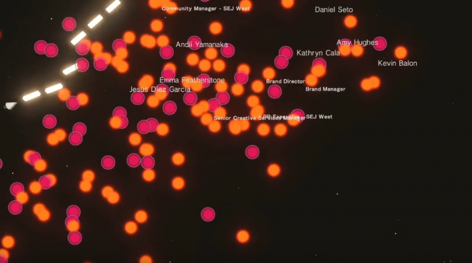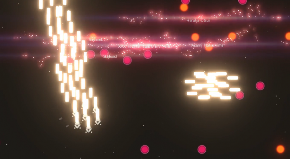 起初,另一个代表自己一方的小点,加入了我的阵营,帮助我进攻弹幕。随着不断的死亡和失败,越来越多的小点加入了进来。每个小点都是通关玩家。最后,屏幕上全是代表我自己一方的小点和弹幕,然后我感到一种莫名的温暖。