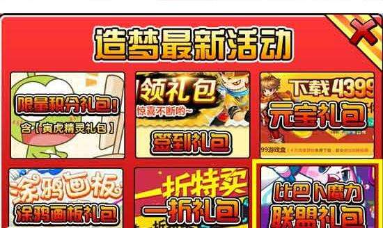进入游戏中的活动,就可以去领取比巴卜魔力联盟礼包哦!