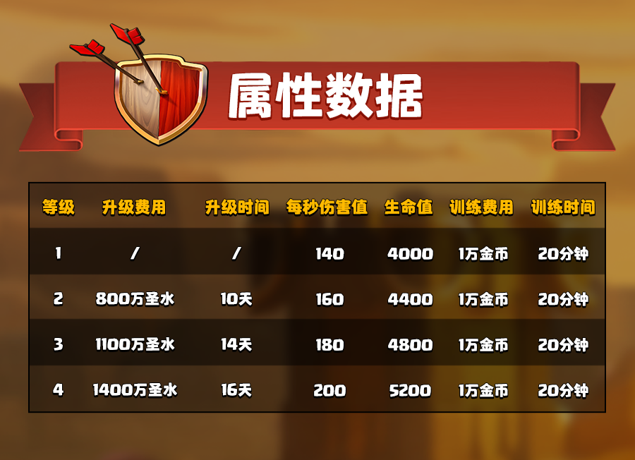 攻城滚木汽车需要在攻城机器车间5级后解锁。训练费用10000金币,最低生命值4000点,最低伤害值每秒伤140点,达到四级后生命值会上升到5200点,秒伤也会达到200点。不过升级成本比较高,但是升级完成后,攻城滚木车带来的实战效果还是很好的,所以要收回升级成本不太容易。