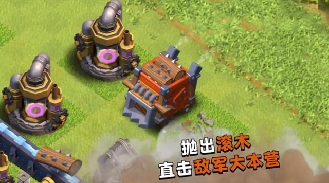 由于攻城滚木车射程远,抛出的滚木对城墙的破坏是原来的四倍,撞上城墙后还能向前翻滚,对沿途的建筑和兵种造成持续的破坏。这个很厉害。相比攻城战车,会给部队带来更强的突击效果。